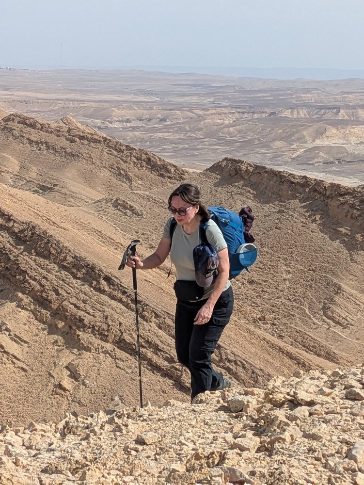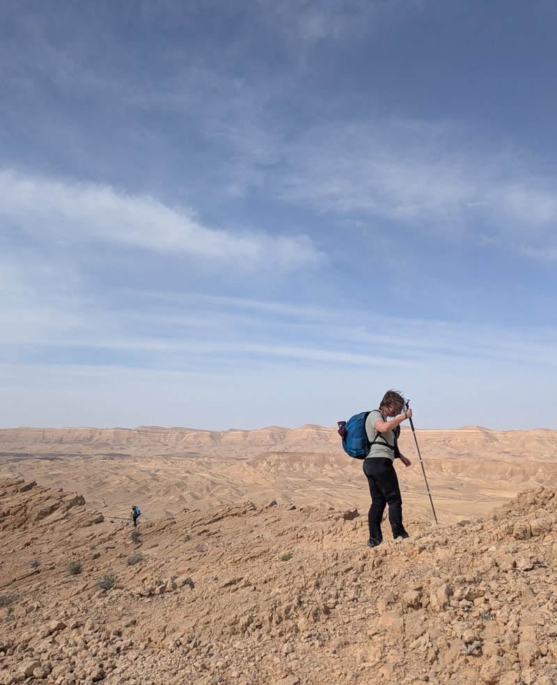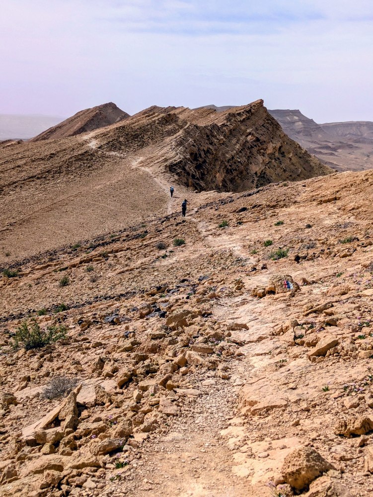И пошли спускаться. К этому моменту по Israel Hiking Map мы сделали 500 м из 750 запланированных метров набора высоты, но те, у кого часы/телефон меряли показали 600 м набора высоты.