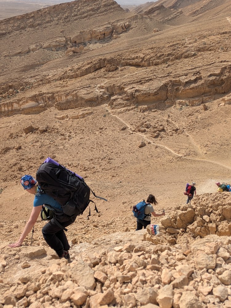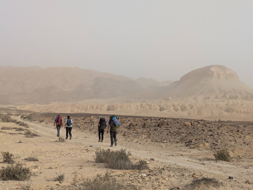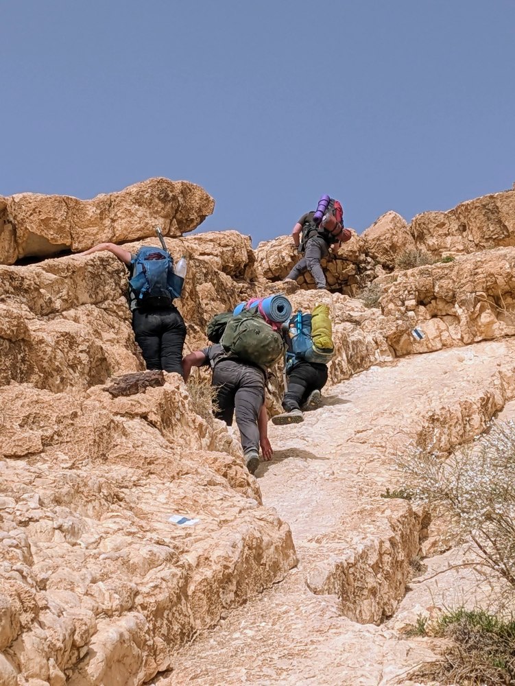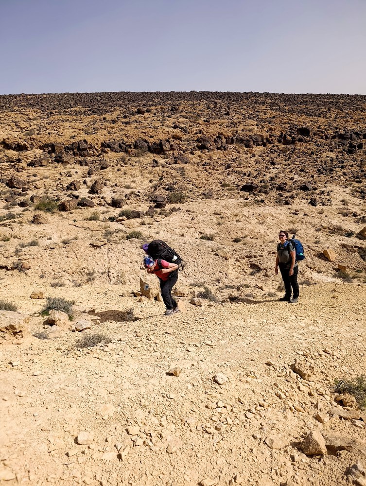 Приехали на ночнй кемпинг Мифаль Орон и пошли. Поначалу всё было нормально - ну подъём, да, идем медленно, но ведь всего 15 км. Но потом всё сильнее начали давать о себе знать тяжелые рюкзаки. У меня было где то 17-18 кг (при том, что я взял воды меньше чем по нормам), у Димы еще больше, у остальных примерно так же.