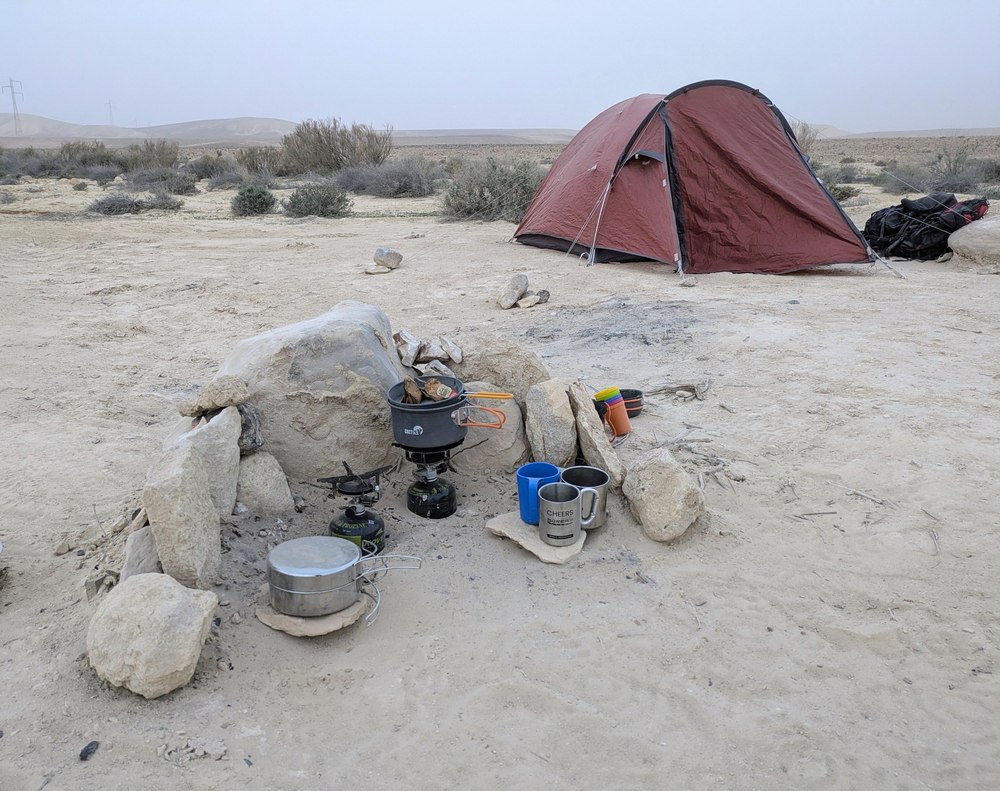 Обычно это приятная часть похода, сидеть, болтать и расслабляться, а из за песка единственное, что хотелось - забраться в палатку
